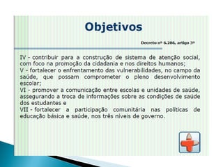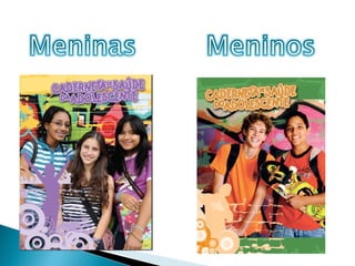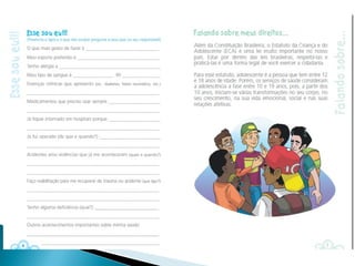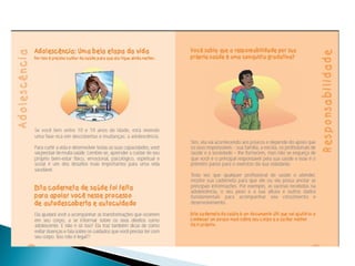 O documento discute a Caderneta de Saúde do Adolescente, que registra o estado de saúde física, mental e social dos adolescentes. A caderneta não pode ser rasurada e deve ser preenchida na escola em parceria com a unidade de saúde e a família, sendo apresentada na rematrícula, assim como a carteira de vacinação. Ela também fornece informações sobre direitos, deveres, saúde bucal, vacinação, desenvolvimento e sistema reprodutor durante a adolescência.