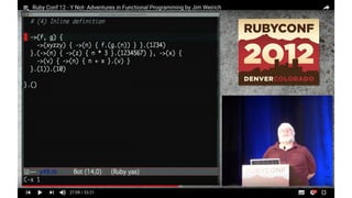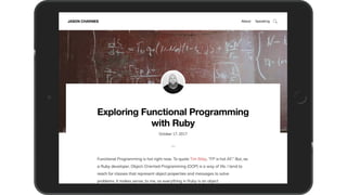 O documento descreve a jornada do autor com programação funcional ao longo de 2017, desde seus primeiros passos com Elm até adotar cada vez mais uma abordagem funcional em Ruby. Ele experimentou diferentes tecnologias, leu livros, organizou e participou de eventos e contribuiu com projetos open source, aprofundando seu entendimento sobre programação funcional.