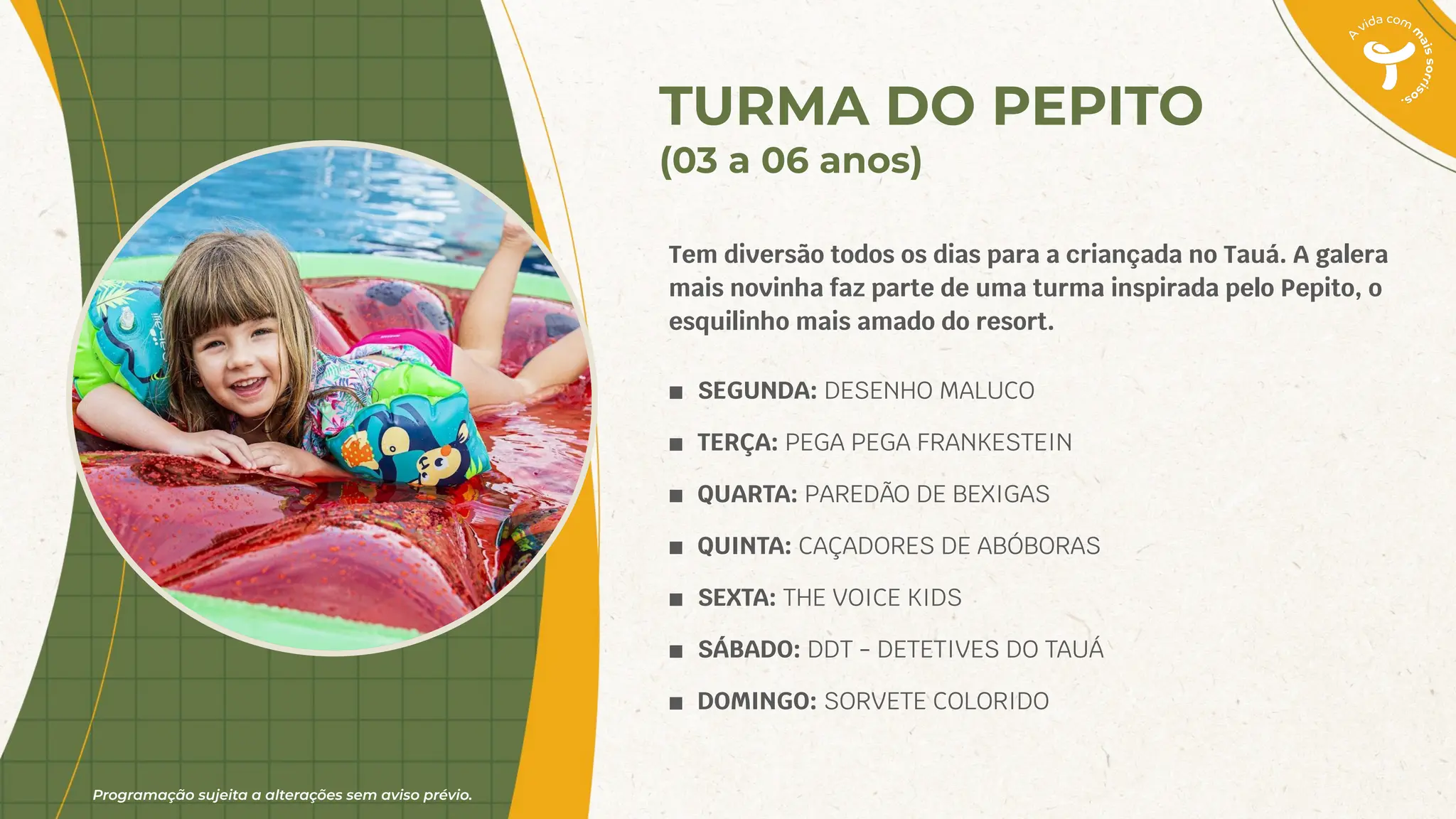 Tem diversão todos os dias para a criançada no Tauá. A galera
