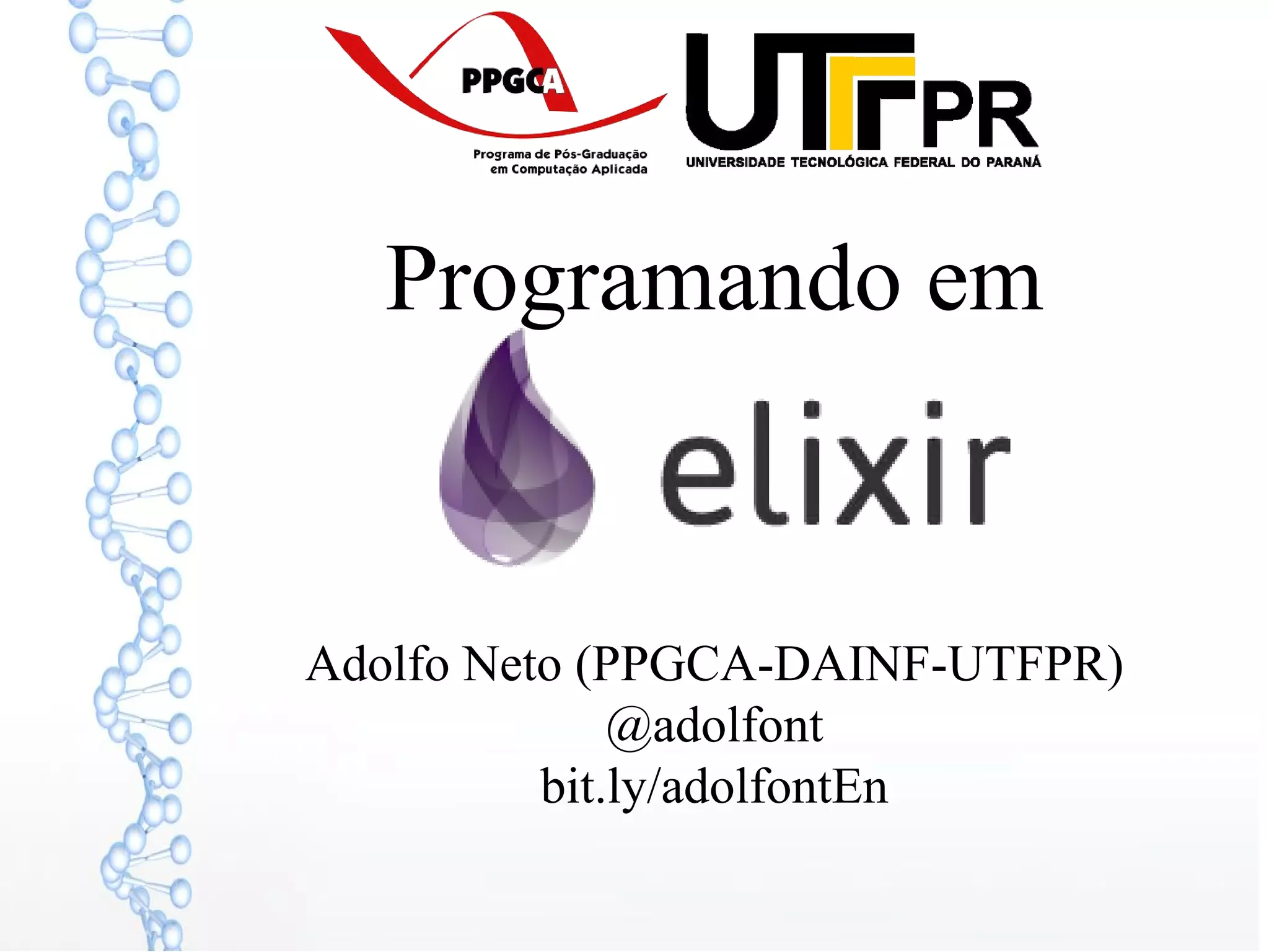 O documento discute a linguagem de programação Elixir. Apresenta o palestrante Adolfo Neto e seu trabalho com Elixir, incluindo ensinar lógica para computação usando Elixir. Também discute como aprender mais sobre Elixir, projetos com a linguagem e empregos em Elixir.