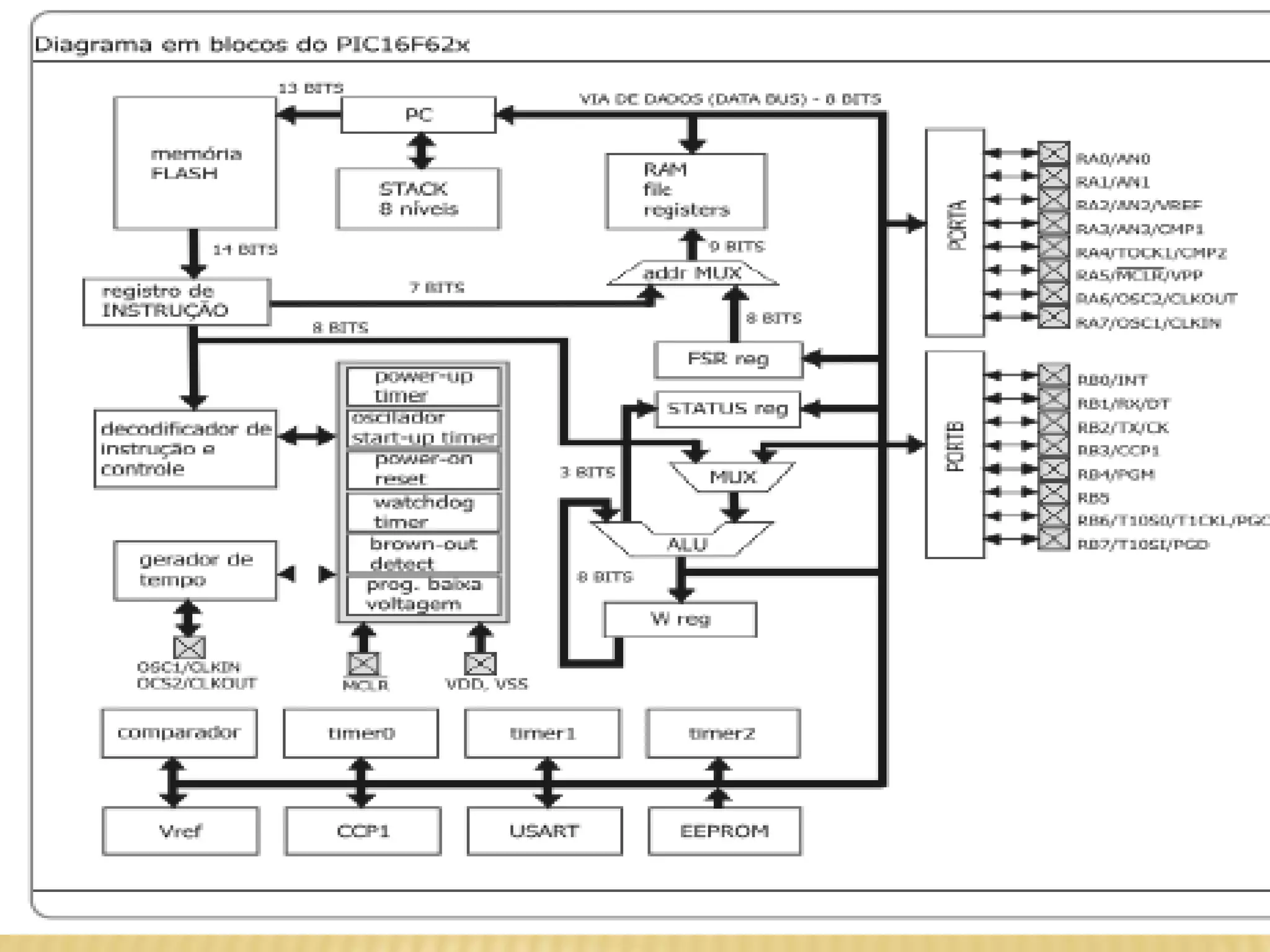 Existem 3famílias de PICs, de 12, 14 e 16 bits de memória