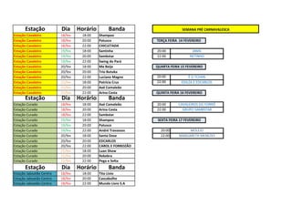 Estação Dia Horário Banda SEMANA PRÉ CARNAVALESCA