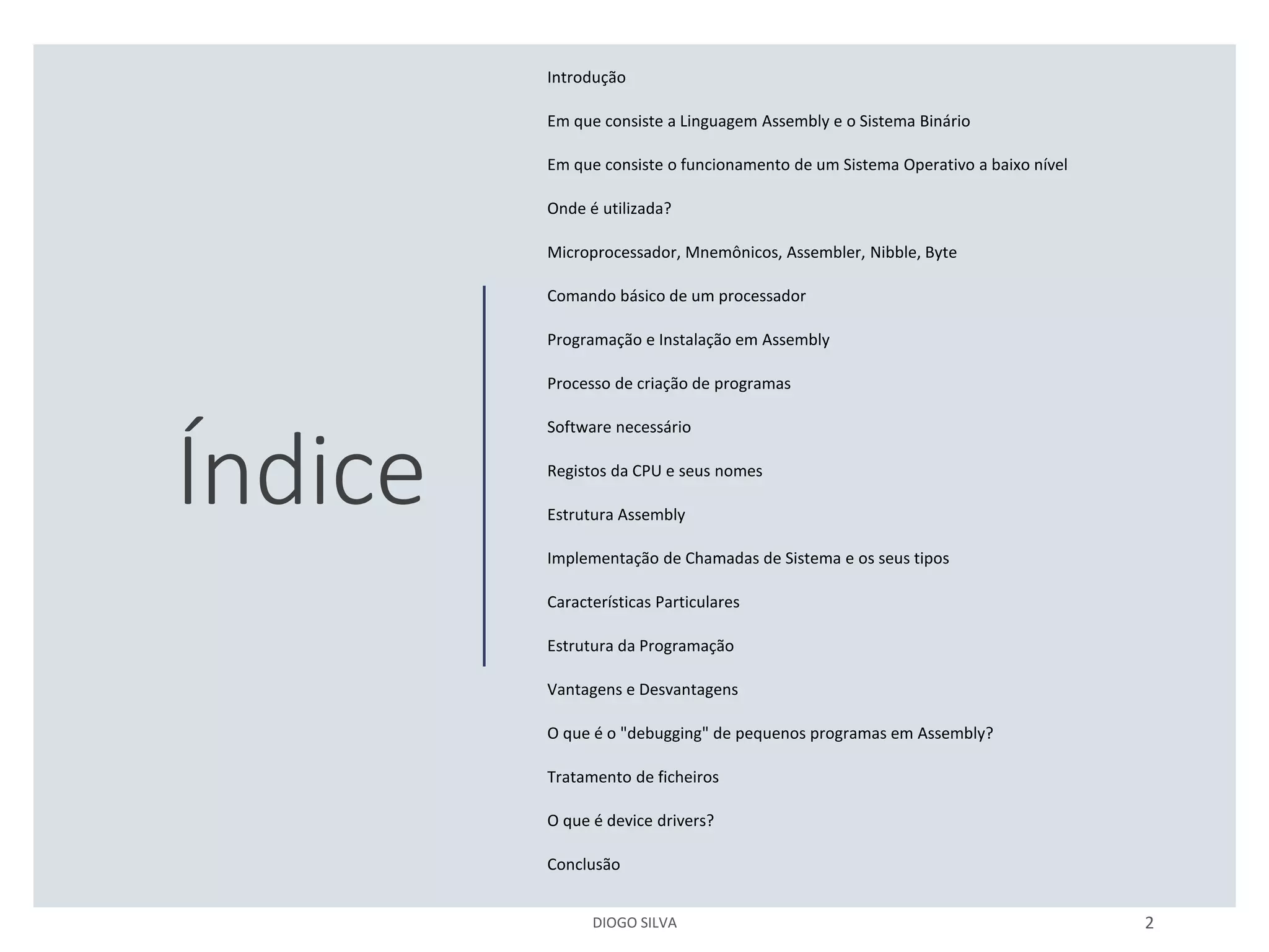 O documento aborda a linguagem de programação assembly e sua importância para a programação de microprocessadores, destacando sua eficiência e ligação com o sistema binário. Ele detalha o funcionamento de um sistema operacional a baixo nível e a estrutura dos processadores, incluindo os registradores e comandos básicos. Além disso, discute a instalação de programas em assembly, a criação de programas, e as ferramentas necessárias para desenvolvimento nesta linguagem.