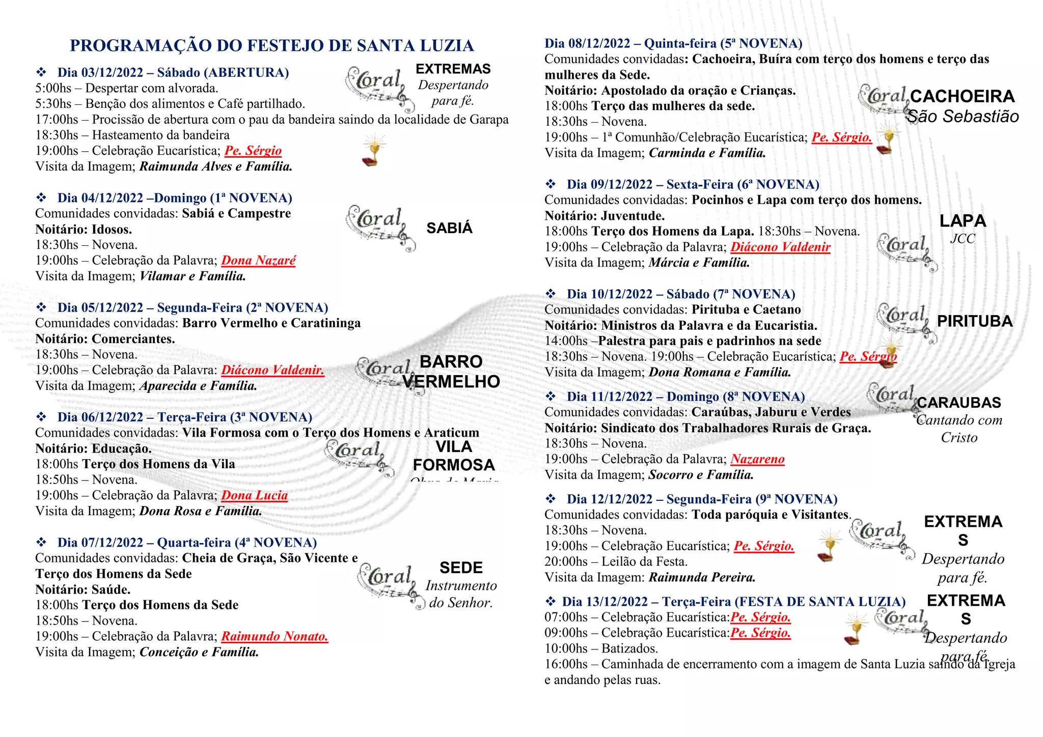 PROGRAMAÇÃO DO FESTEJODE SANTA LUZIA