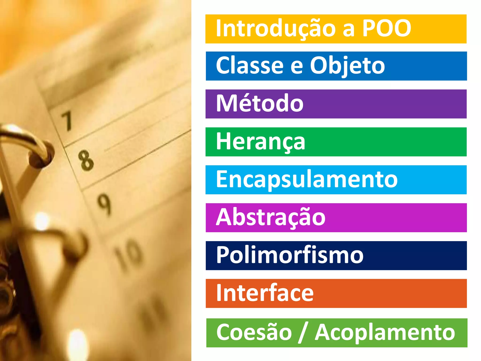 A programação orientada a objetos (POO) é um paradigma que organiza o código em classes e objetos, facilitando a manutenção e a reutilização. Os principais conceitos incluem herança, encapsulamento, abstração, polimorfismo e a definição de métodos e atributos. A POO se destaca por descrever melhor a realidade através de objetos, embora apresente complexidades no aprendizado.