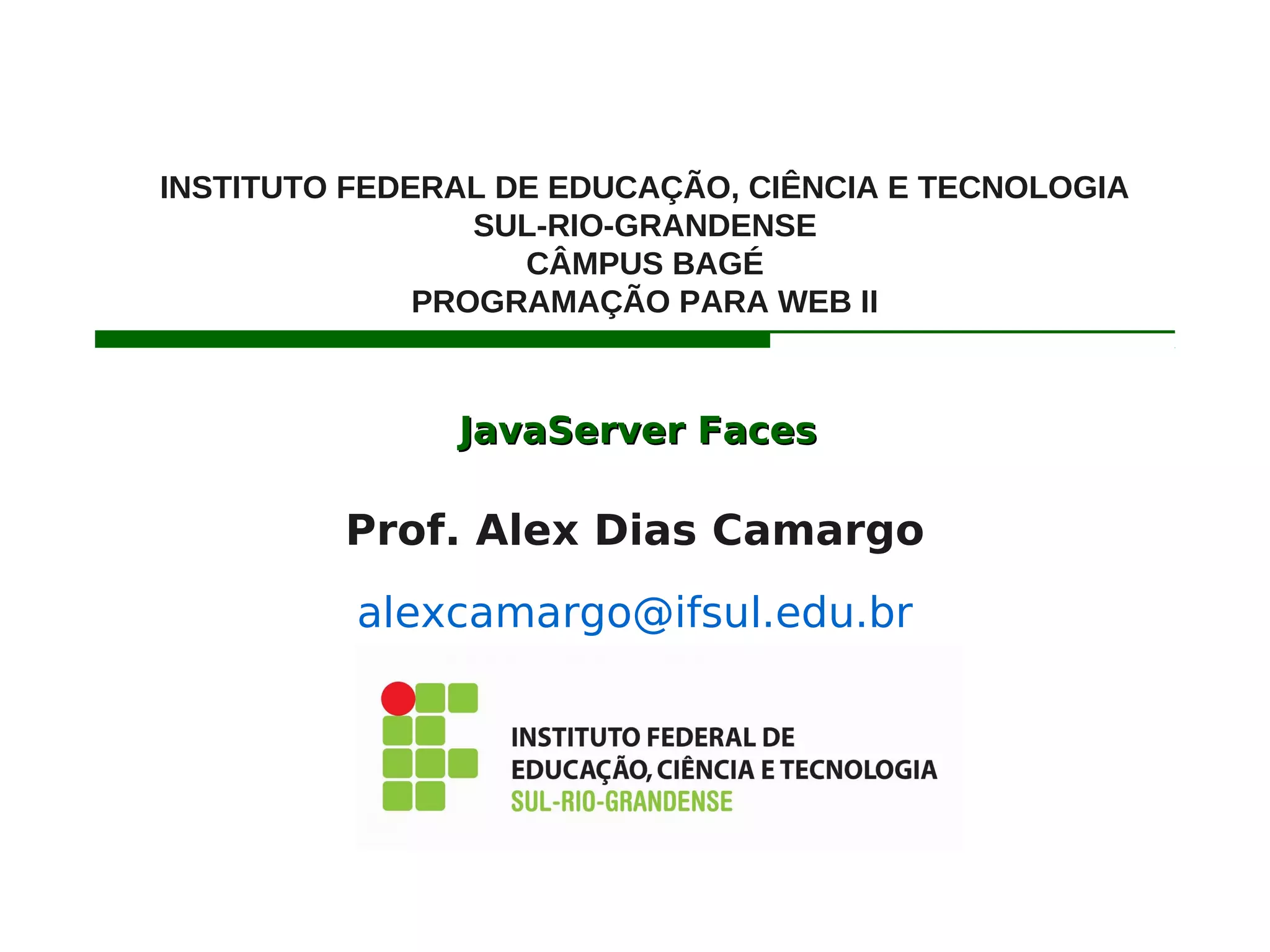 O documento apresenta JavaServer Faces (JSF), uma especificação Java para construção de interfaces de usuário baseadas em componentes. Descreve os principais componentes do JSF, incluindo Facelets, JavaBeans, tags e metadados. Também discute o padrão MVC e fornece exemplos práticos de projetos JSF simples e com o framework PrimeFaces.