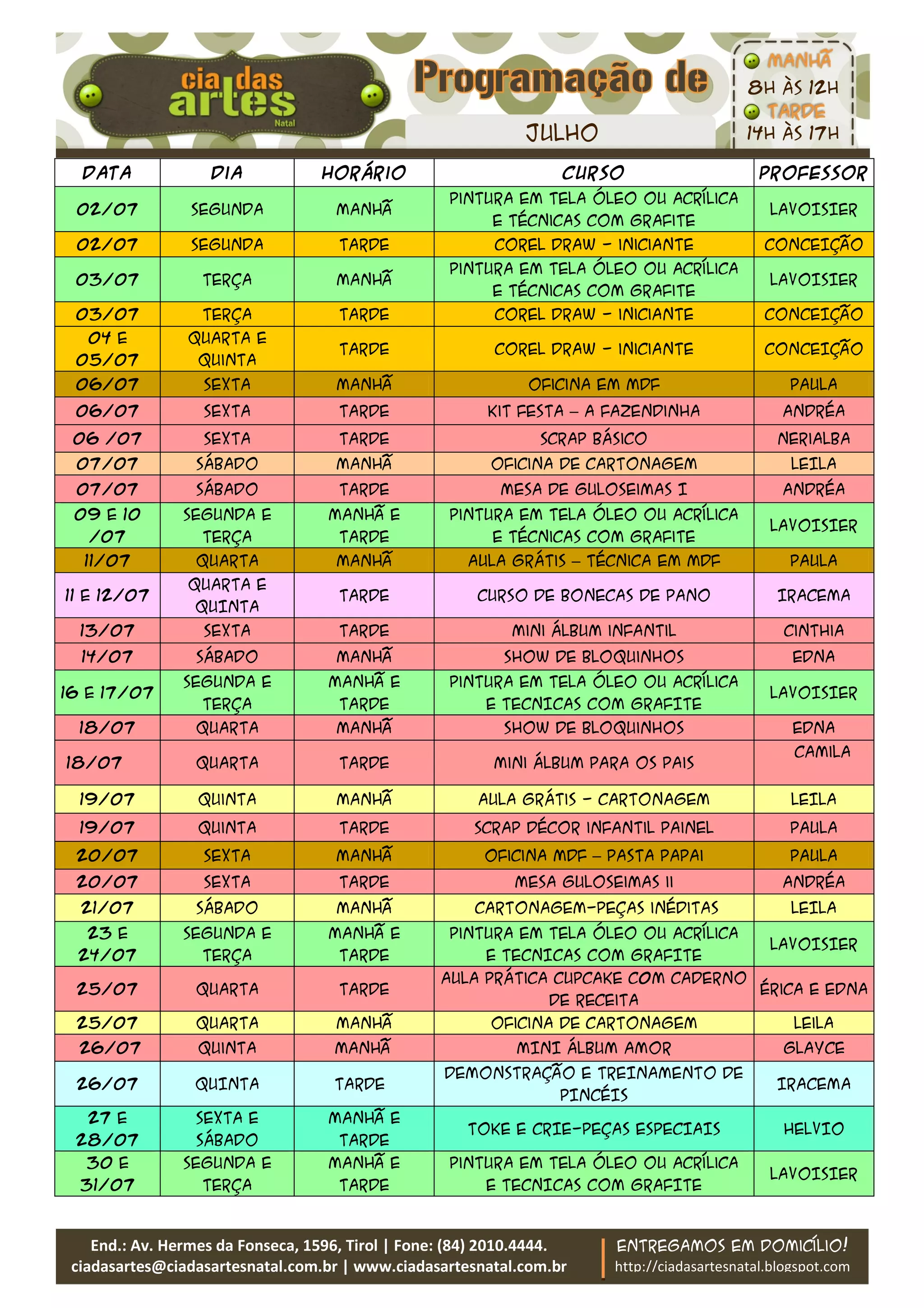 ciadasartes@ciadasartesnatal.com.br | www.ciadasartesnatal.com.br http://ciadasartesnatal.blogspot.com