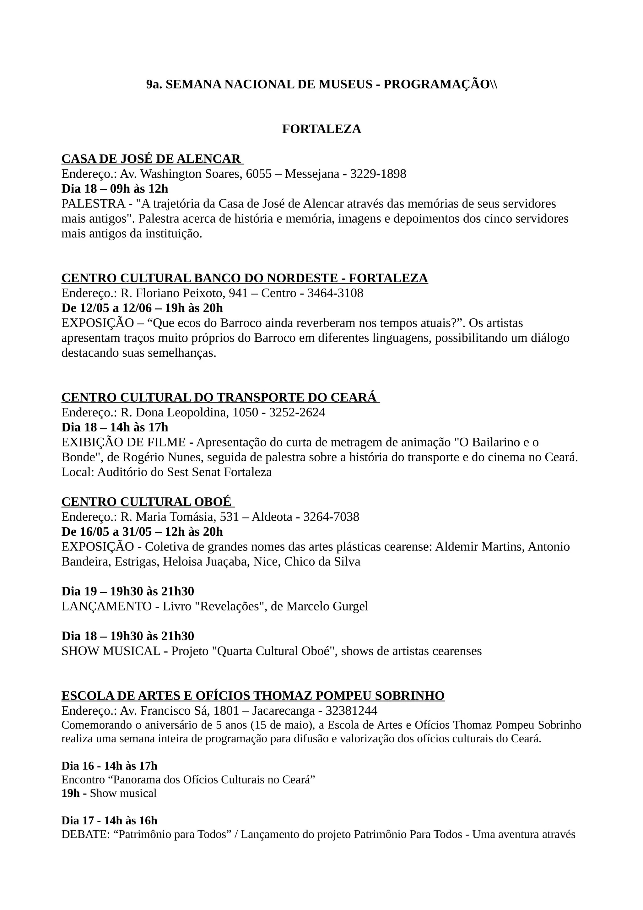 9a. SEMANA NACIONALDE MUSEUS - PROGRAMAÇÃO