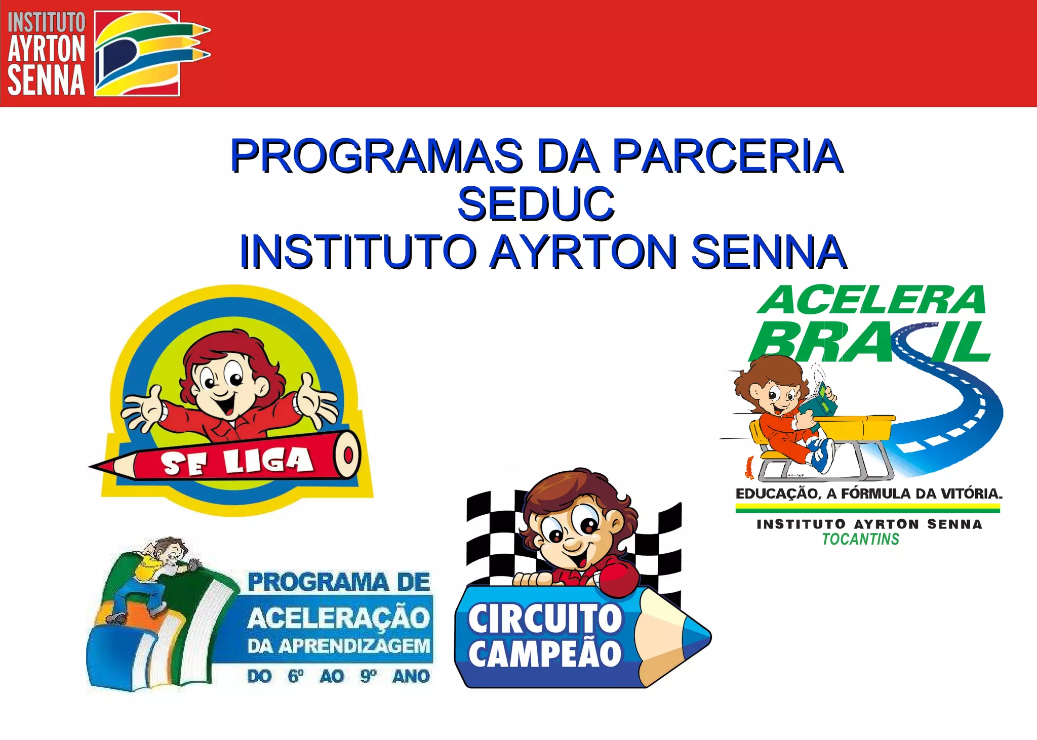 Este documento descreve vários programas educacionais desenvolvidos em parceria entre a Secretaria de Educação e o Instituto Ayrton Senna. Os programas visam melhorar a alfabetização, reduzir evasão escolar e corrigir distorções idade-série através de estratégias como turmas heterogêneas, material didático estruturado e acompanhamento pedagógico.