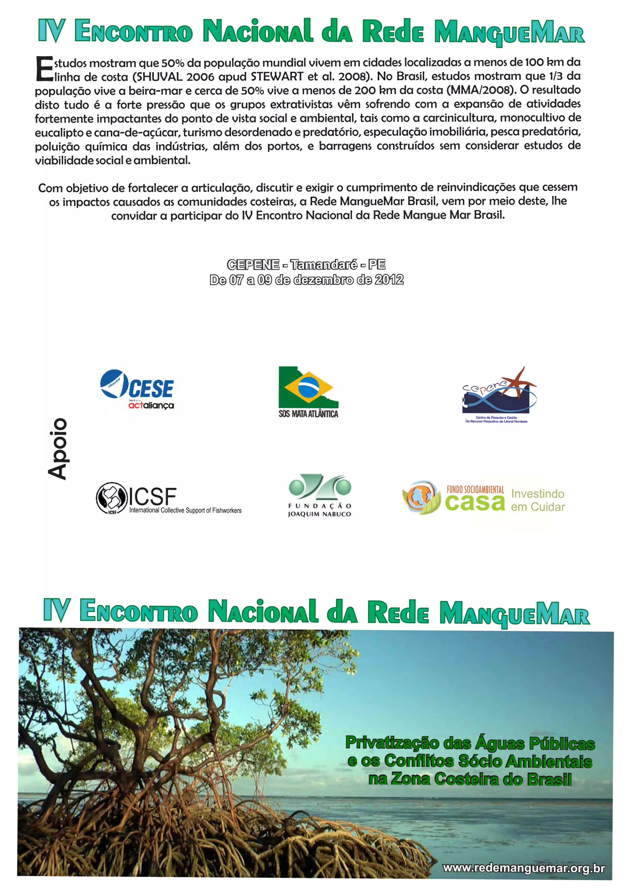 O documento apresenta a programação de um encontro sobre os conflitos na zona costeira brasileira ao longo de três dias, com apresentações, debates e trabalhos em grupo sobre legislação, experiências e desafios relacionados à pesca artesanal e comunidades ribeirinhas.