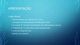 O documento discute Progressive Web Apps (PWAs), definindo-as como aplicações web que se comportam de forma progressiva de acordo com os recursos do dispositivo, oferecendo uma experiência semelhante à de aplicativos nativos. PWAs utilizam recursos como Service Workers para funcionar offline e melhorar o desempenho, trazendo vantagens em relação a aplicativos normais.