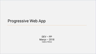 O documento discute Progressive Web Apps (PWAs), definindo-as como um conjunto de técnicas para desenvolver aplicações web que adicionam funcionalidades de apps nativos. Detalha características como ser progressivo, responsivo, funcionar offline e ter notificações push. Aponta vantagens de PWAs sobre apps nativos em termos de retenção de usuários e custos.