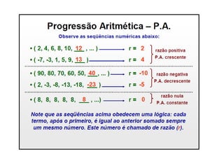 Entre 4 e 100 existem 33 números múltiplos de 3. Um teatro tem poltronas em filas crescentes de 18 a 30 poltronas, com 20 filas no total, somando todas as poltronas do teatro em 18 + 24 + 30 + ... + 330 = 1.380 poltronas.