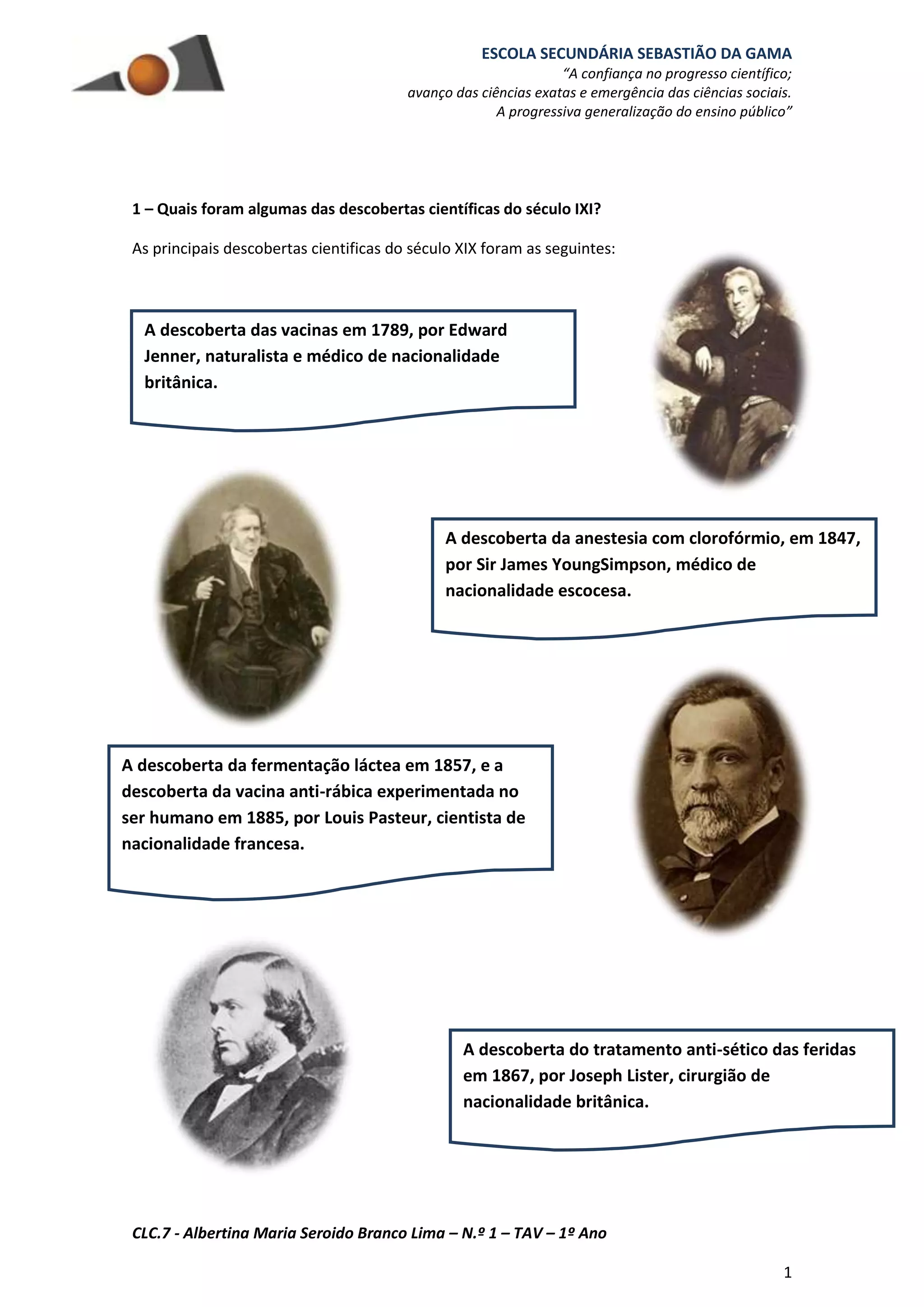 O documento descreve as principais descobertas científicas, teorias e desenvolvimentos do século XIX, incluindo avanços na medicina como as vacinas e a anestesia, e o surgimento de novas ciências como a psicanálise. As ciências exatas e sociais prosperaram neste período, marcado pelo positivismo e progresso técnico da Revolução Industrial.
