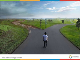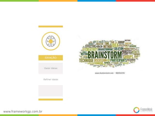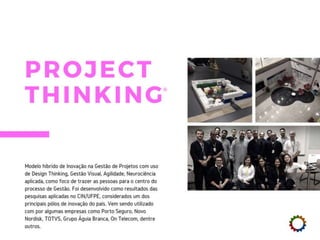O documento descreve a evolução histórica dos paradigmas de gerenciamento de projetos desde a década de 1910 até os dias atuais. Ele apresenta os principais métodos desenvolvidos em cada década, como o diagrama de Gantt na década de 1910, o método do caminho crítico na década de 1950 e a gestão de valor agregado na década de 1960. O documento também discute conceitos como pensamento de design e inovação aplicados aos projetos.