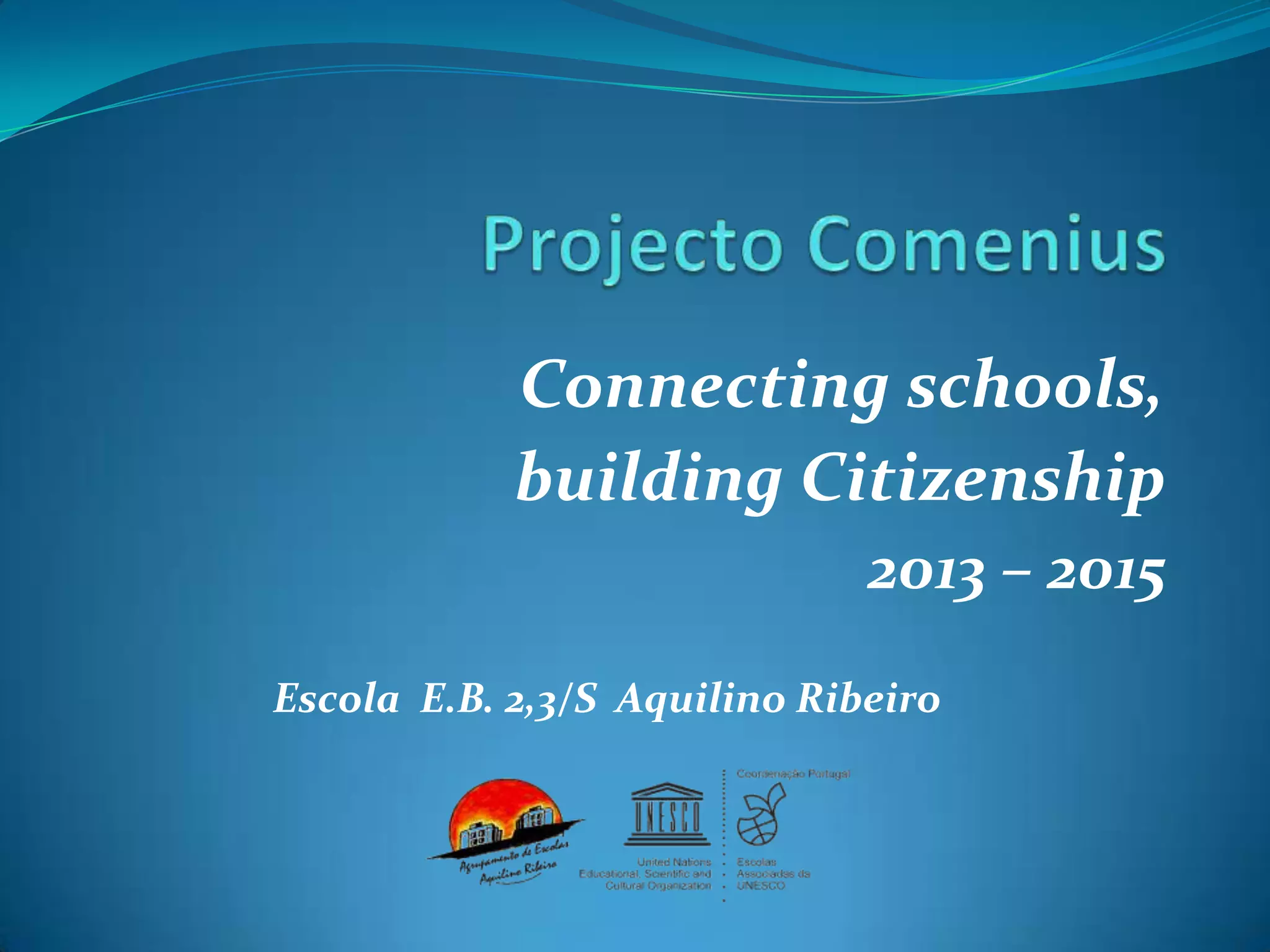 O documento descreve um projeto Comenius entre escolas da União Europeia sobre cidadania europeia. O projeto envolve escolas em Portugal, Espanha, França e Polônia e inclui atividades e intercâmbios entre 2013-2015 sobre temas como juventude, multiculturalismo e igualdade. Os resultados esperados incluem vídeos, exposições, revistas digitais e debates sobre história e valores europeus.