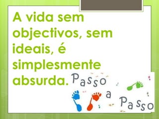 1. O documento discute a importância de se ter objetivos e um projeto de vida, definindo um projeto de vida como um caminho com objetivos traçados visando a auto-realização pessoal.