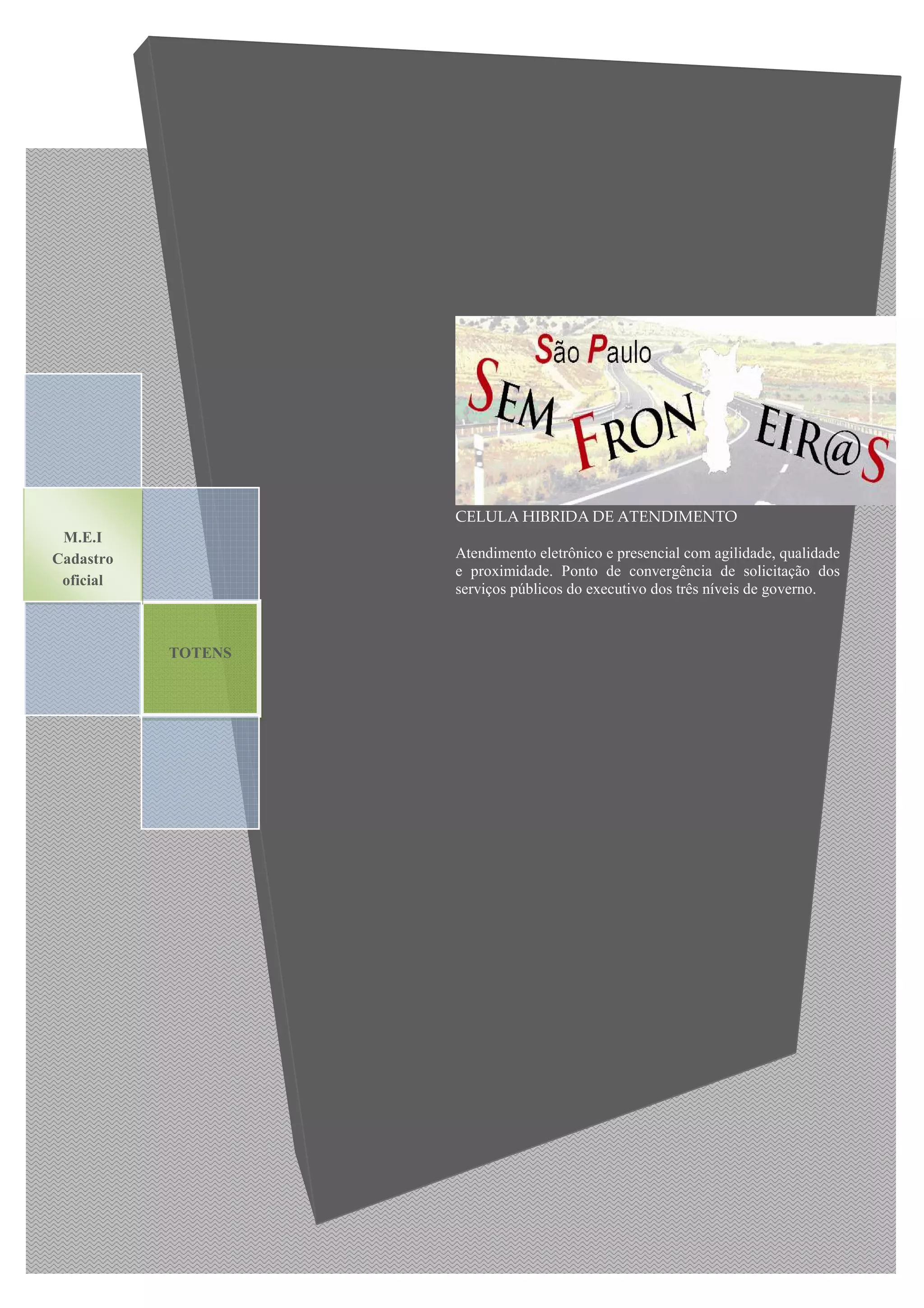 O documento propõe a criação de 763 células de atendimento ao cidadão a uma distância máxima de 2km, promovendo o autoatendimento de serviços públicos municipais e de outros níveis de governo para melhorar o relacionamento do governo com a população.