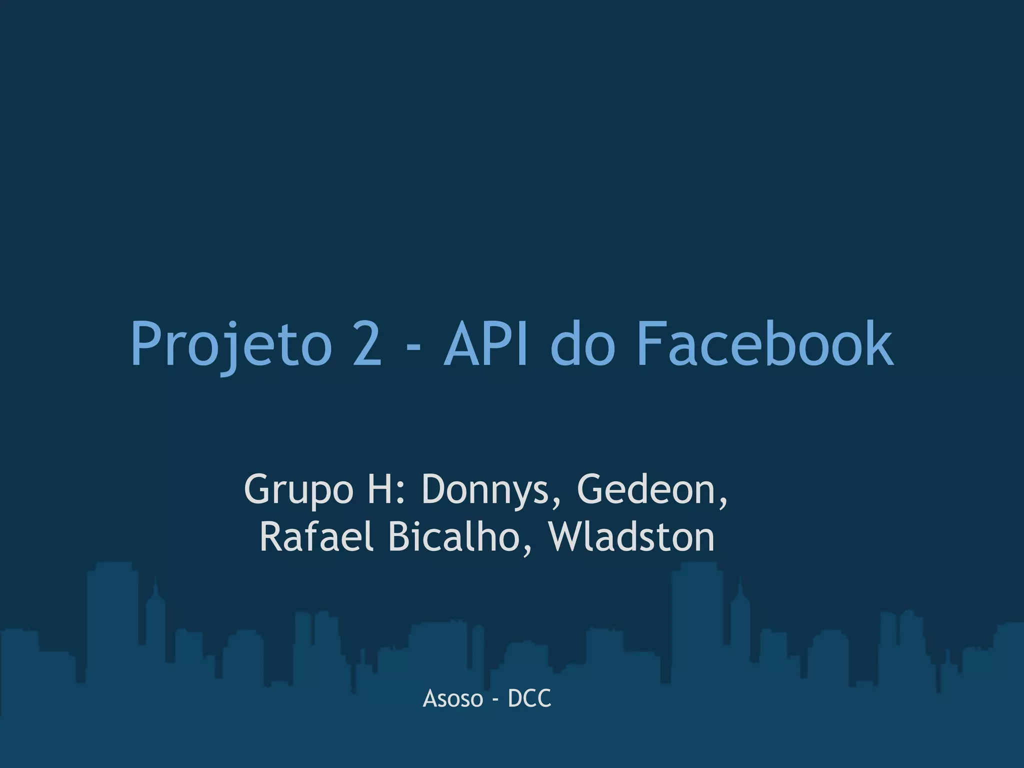 O documento descreve a API do Facebook, que permite integrar aplicativos e sites com recursos da rede social, como login, curtidas e compartilhamentos. Ele explica conceitos como autenticação, Graph API e uso em diferentes plataformas como web, Android e iOS. Também dá exemplos de aplicativos que usam a API, como TripAdvisor, Coca-Cola e Eventbrite.