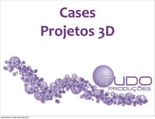 O documento apresenta projetos 3D de stands, quiosques, envelopamentos de carros e displays para balcão de empresas como Disney, Philips e Shopping Centers. As imagens mostram detalhes dos projetos para material promocional.