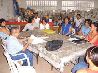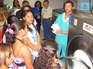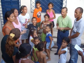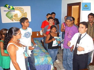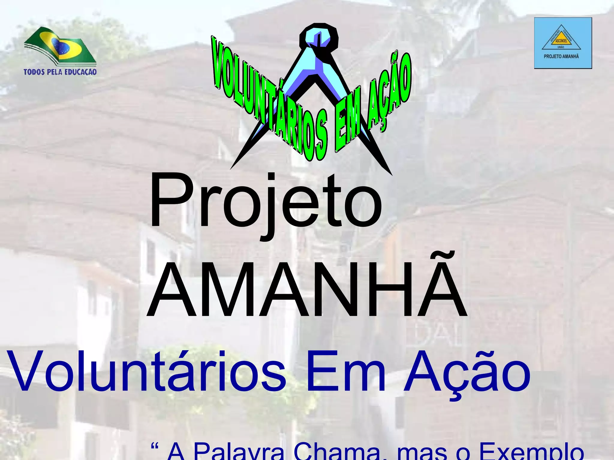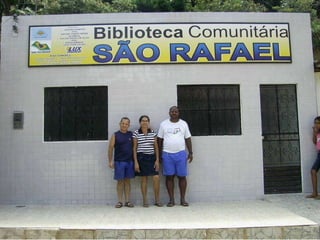 O documento descreve o projeto "Voluntários Em Ação" que tem como objetivo principal fornecer uma alfabetização de qualidade para crianças carentes em duas comunidades de Maceió através de uma biblioteca comunitária e sala de reforço escolar. O projeto também visa gerar renda para as famílias dessas comunidades. Ele tem enfrentado dificuldades em obter apoio financeiro e recursos humanos das autoridades públicas para implementar suas atividades.
