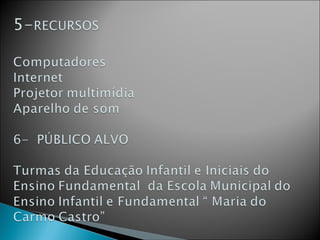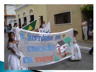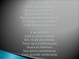 1) O documento apresenta as atividades realizadas por alunos sobre a história de Arara em outubro e novembro, incluindo pesquisas sobre o município, hino, símbolos e personalidades.
