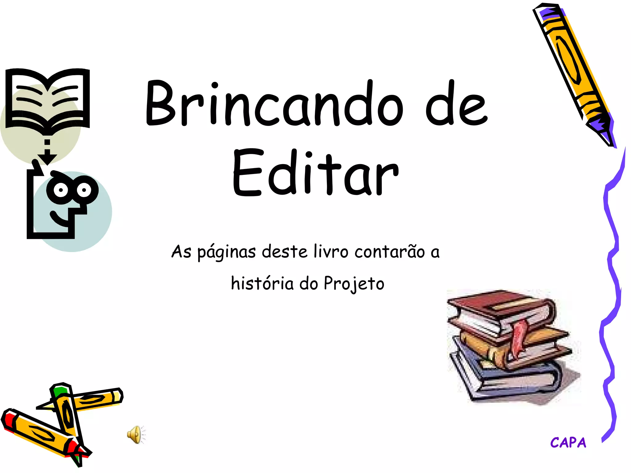 O documento descreve o projeto "Brincando de Editar" do Arquivo Histórico de Porto Alegre, que ensina crianças sobre livros e escrita por meio de oficinas. O projeto apresenta o livro como patrimônio cultural e conduz as crianças em atividades como montagem de livros, visita à biblioteca e criação de seus próprios textos e imagens.