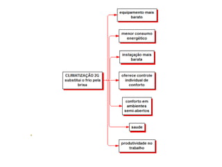O documento discute o projeto BRISA, que tem como objetivo fornecer conforto térmico sem suor através da troca do frio pela brisa. O BRISA 2.5 usa o computador do usuário para processamento, enquanto o BRISA 2.0, 3.0 terão processamento embarcado. O BRISA 2.5 aumentou a eficiência energética em 53% ao manter ambientes menos refrigerados e mais ventilados.