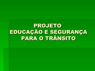 Este projeto visa educar estudantes e a comunidade sobre segurança no trânsito e meio ambiente através de atividades interdisciplinares em todas as disciplinas. As atividades incluem discussões, pesquisas, produções de texto, jogos, dramatizações e uma feira cultural para apresentar os trabalhos realizados. O objetivo é conscientizar sobre o papel de cada um na sociedade como pedestres e multiplicadores da educação no trânsito.