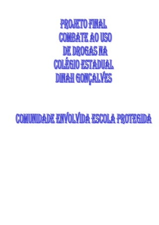 O documento descreve o projeto "Comunidade Envolvida Escola Protegida" que tem como objetivo conscientizar sobre os perigos das drogas e promover um ambiente escolar saudável através do engajamento da comunidade. O projeto inclui atividades extracurriculares, debates sobre drogas, melhorias na escola, e tratamento delicado dos casos de uso de drogas entre os alunos. A interação com a comunidade é apontada como fator chave para reduzir a violência e o uso de drogas.