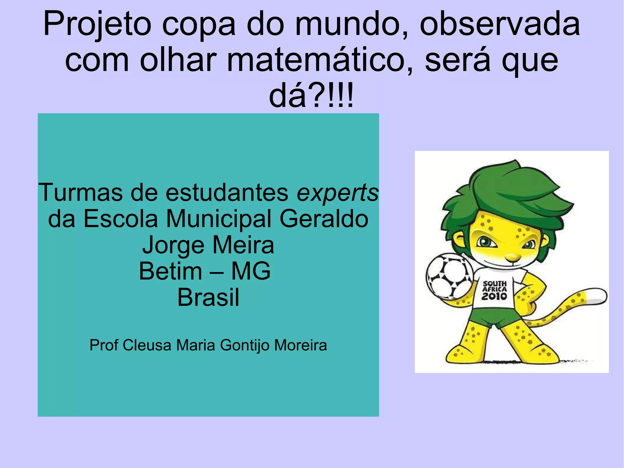 Este documento discute como conceitos matemáticos como medidas, figuras geométricas e números podem ser aplicados ao futebol e à Copa do Mundo. Ele explora como calcular a área de um campo de futebol, a distância percorrida ao dar uma volta nele, e a distância mínima para um gol de fora da área. Também discute elementos geométricos encontrados no campo como segmentos de reta, ângulos, quadriláteros e circunferências.