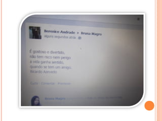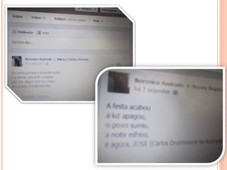 O projeto tem como objetivo divulgar a poesia para alunos de 4o a 9o ano através das redes sociais. Os alunos receberão fragmentos poéticos e pesquisarão os poemas completos, depois criarão suas próprias poesias que serão publicadas em vários locais. O projeto avaliará a capacidade criativa e de expressão dos alunos.
