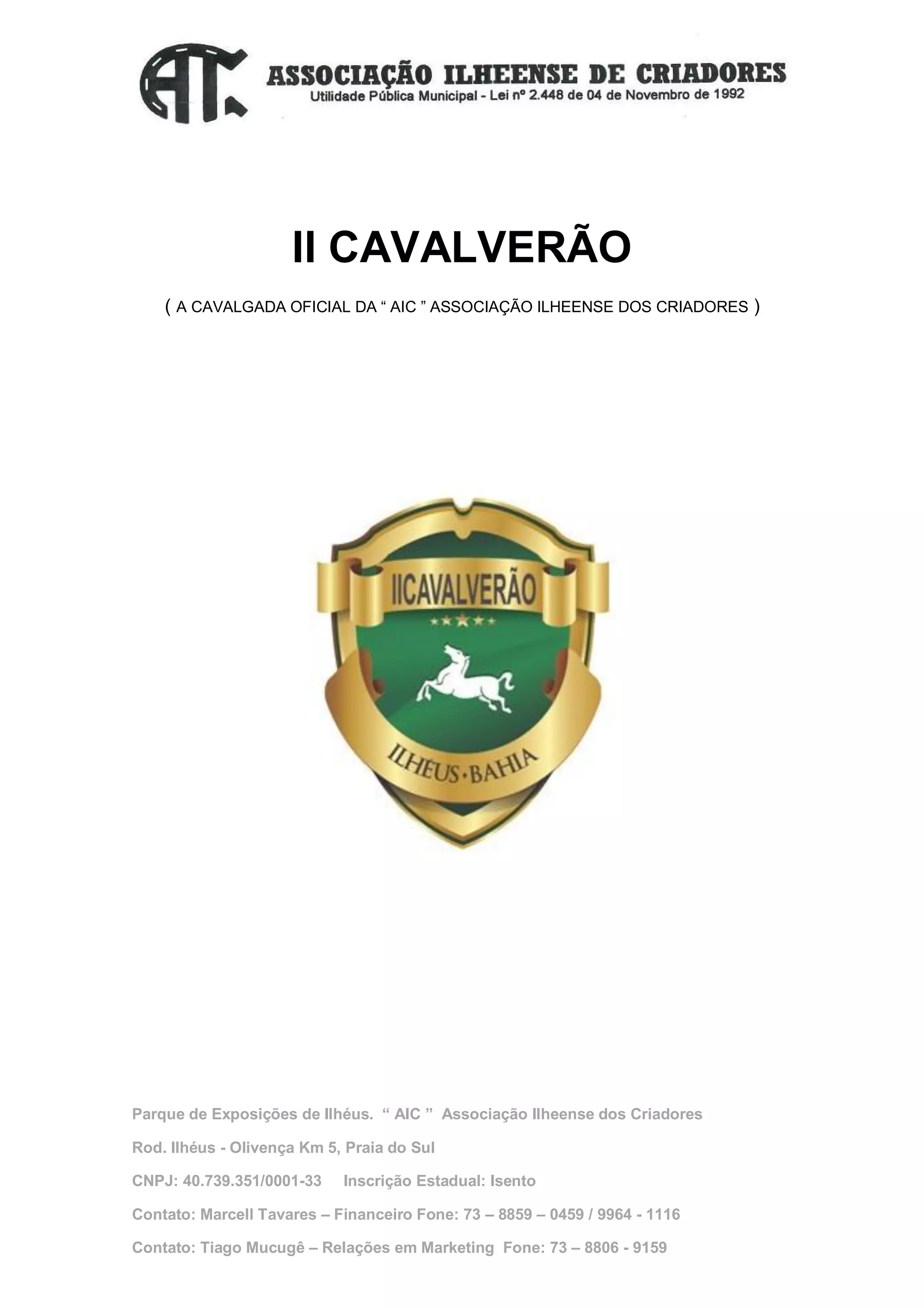 ( A CAVALGADA OFICIAL DA “ AIC ” ASSOCIAÇÃO ILHEENSE DOS CRIADORES )