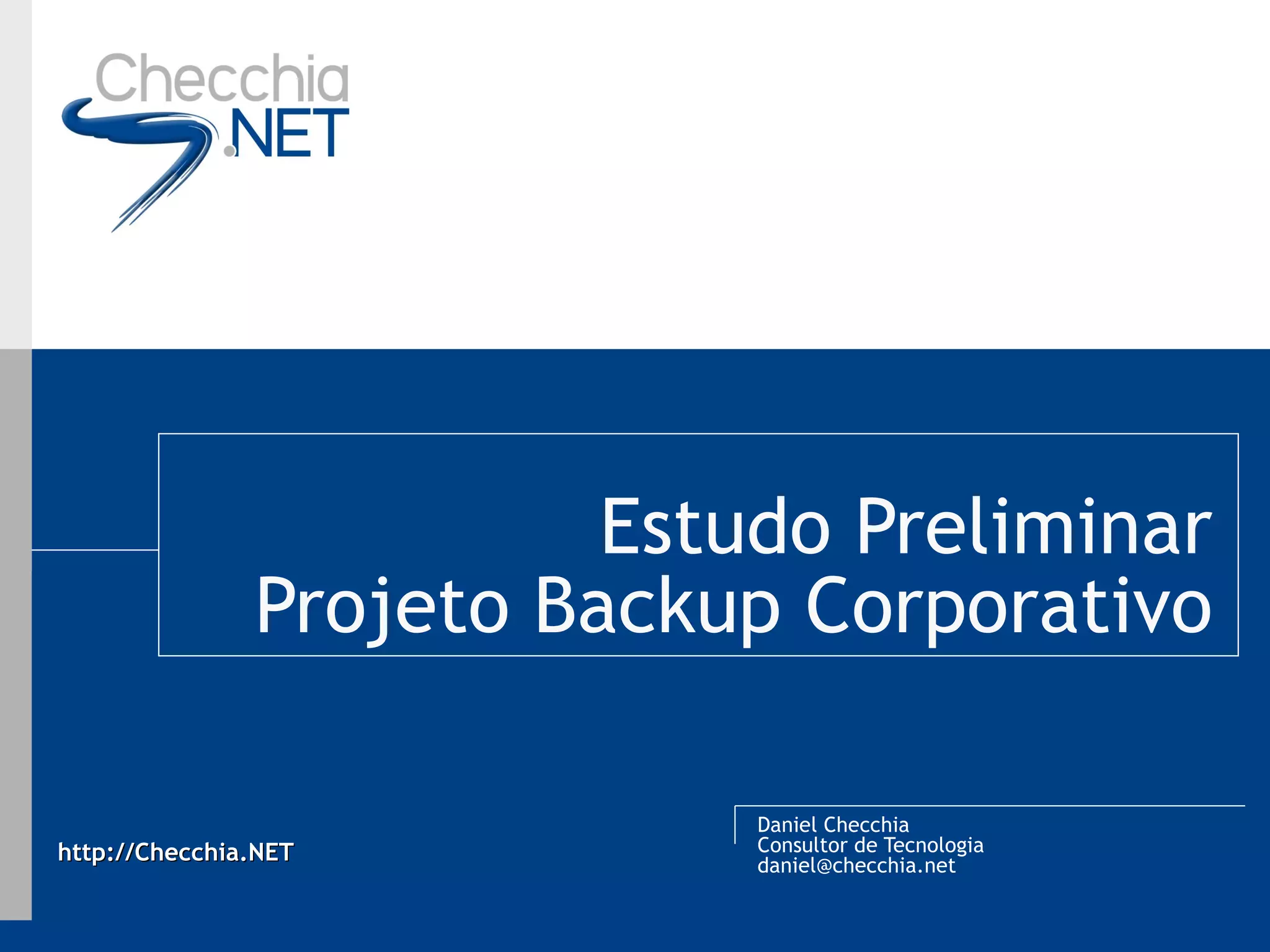 O documento propõe uma solução de backup corporativo com três sugestões de hardware, descrevendo a política e rotina de backup, estimativa de consumo de fitas e custos financeiros para cada sugestão.