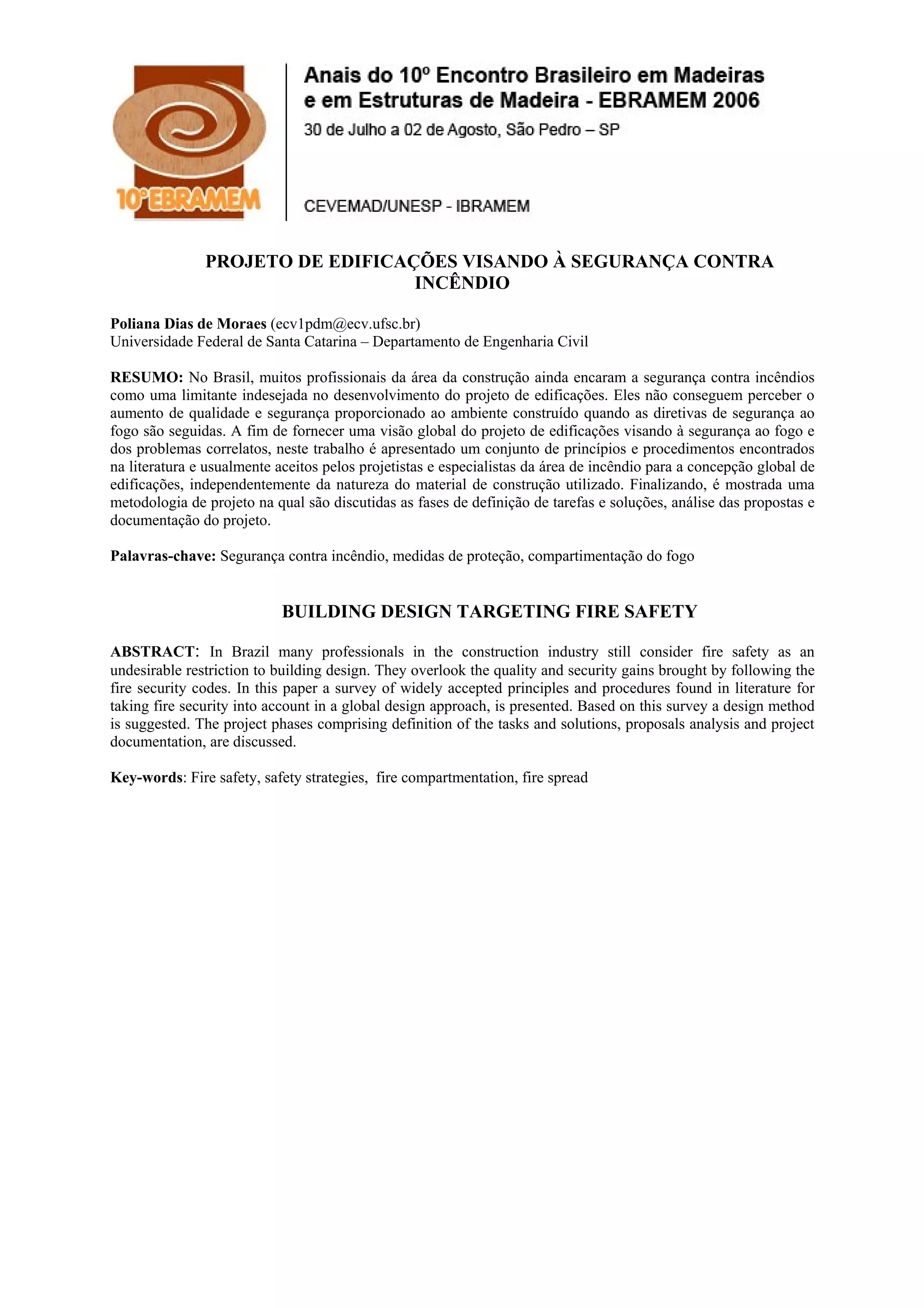 2. É apresentado um conjunto de princípios e procedimentos para concepção global de edifícios visando segurança contra fogo.