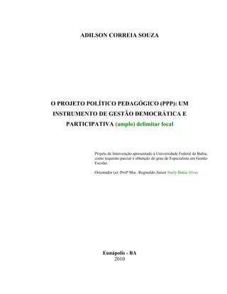 Projeto de Intervenção apresentado à Universidade Federal da Bahia,