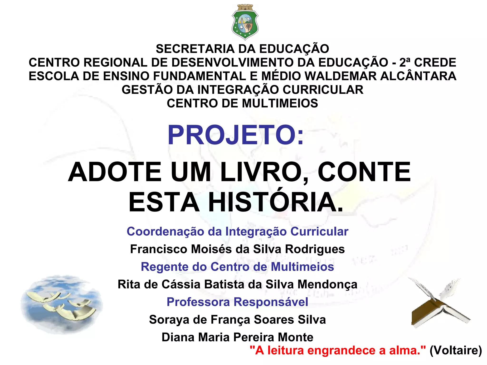 O projeto 'Adote um livro, conte esta história' busca incentivar o prazer pela leitura entre os alunos do ensino fundamental e médio, promovendo rodas de contação e inclusão digital. Os objetivos incluem a reflexão sobre as obras lidas, a produção de textos e a socialização de materiais através de plataformas digitais. A avaliação será contínua, focando na participação e produção dos alunos ao longo do projeto.