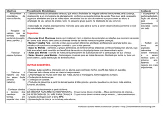 O documento apresenta um projeto para comemorar o Dia das Mães na escola com várias atividades que valorizam a figura materna e resgatam valores familiares. O projeto tem como objetivos reconhecer a importância da mãe, resgatar valores como respeito e amor, e valorizar o trabalho das mães. Serão realizadas atividades como concursos, bazares, apresentações musicais e confecção de lembranças para as mães.