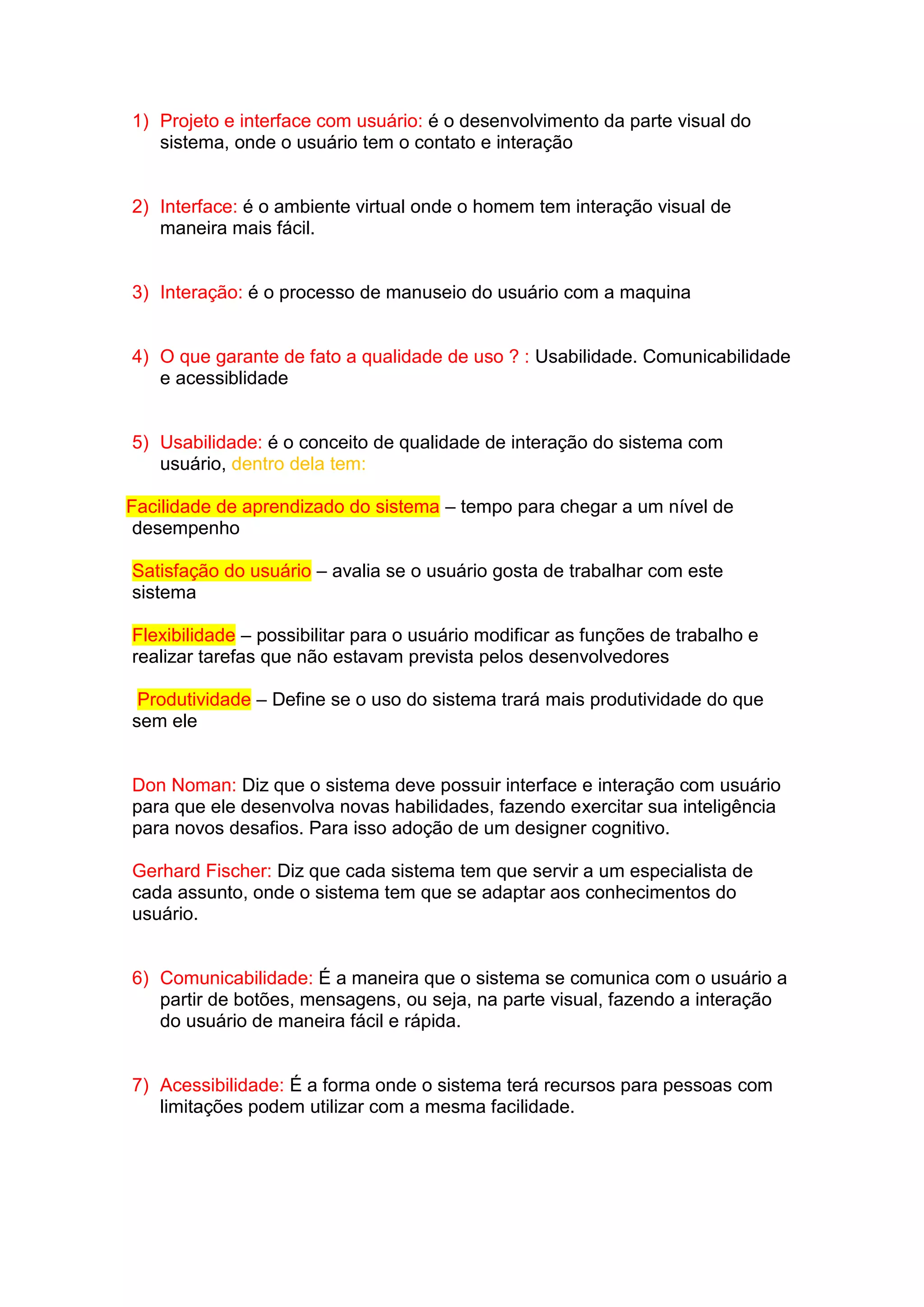 O documento discute os principais conceitos de interface com usuário e usabilidade, incluindo protótipos, estilos de interação e normas. Aborda a importância de entender as necessidades e capacidades dos usuários para desenvolver sistemas intuitivos e eficientes.