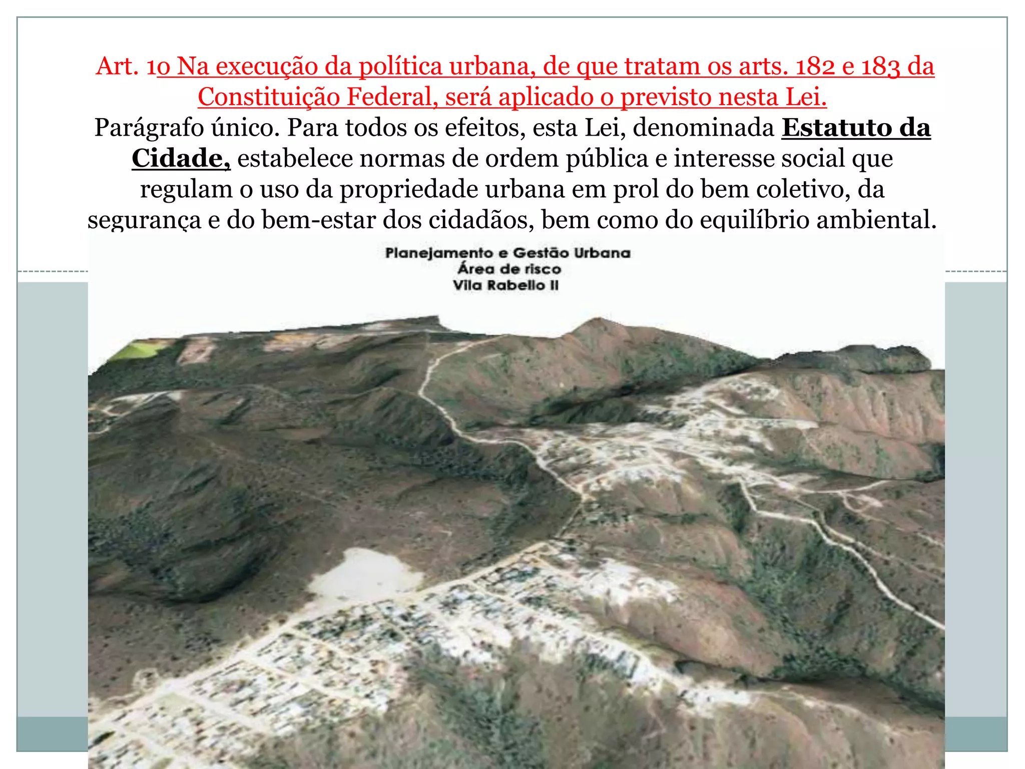 O documento descreve os princípios e instrumentos da política urbana no Brasil de acordo com a Constituição Federal e o Estatuto da Cidade. Ele estabelece normas para o uso da propriedade urbana considerando o bem coletivo, a segurança e o bem-estar dos cidadãos. Também trata da ordenação e controle do uso do solo urbano para evitar usos inadequados e garantir a sustentabilidade ambiental.