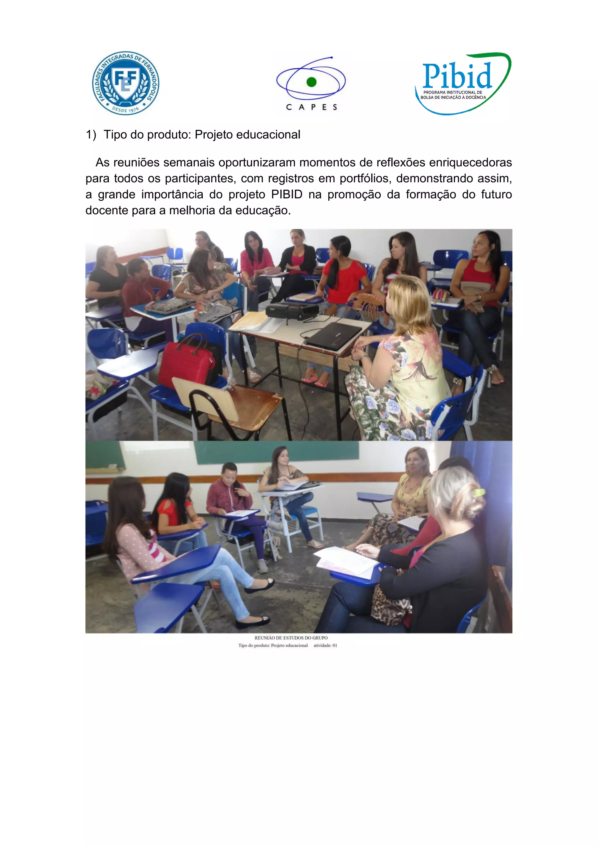 O documento descreve dois projetos educacionais desenvolvidos por acadêmicos do curso de Pedagogia. O primeiro projeto visa melhorar a competência leitora e habilidades matemáticas de alunos do 5o ano com dificuldades de aprendizagem. O segundo projeto é um sarau de poemas para incentivar o gosto pela leitura e expressão artística de alunos do 5o ano.