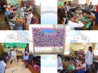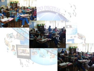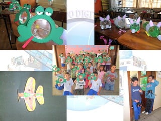 O documento descreve um projeto para desenvolver a competência leitora de alunos utilizando recursos tecnológicos e mídias. O projeto inclui leituras, pesquisas na internet, oficinas para construção de brinquedos com materiais recicláveis, e produção de enfeites natalinos reutilizáveis.