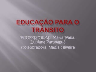 O documento aborda a educação para o trânsito, destacando a importância da sinalização como o semáforo e as regras que devem ser seguidas por diferentes usuários, como motoristas de ônibus, caminhões, automóveis e motocicletas. Enfatiza a responsabilidade dos motoristas em garantir a segurança dos passageiros, respeitar as normas de trânsito e manter os veículos em boas condições. Além disso, menciona a vulnerabilidade dos motociclistas e a necessidade de seguir rigorosamente as regras de segurança.