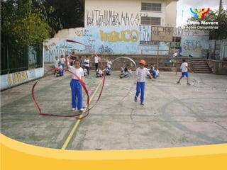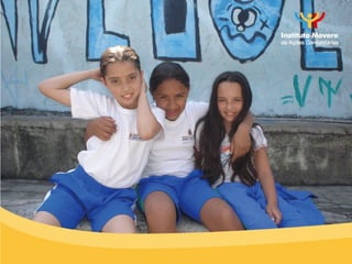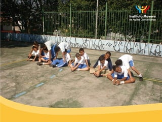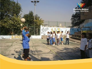 O documento descreve um programa de prevenção da obesidade infantil em uma escola pública que inclui levantamento de dados sobre porcentagem de gordura, medidas, colesterol e glicemia de alunos, além de questionários sobre alimentação, atividade física e custos familiares. O programa conta com parcerias de investimento social.