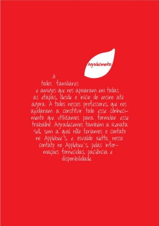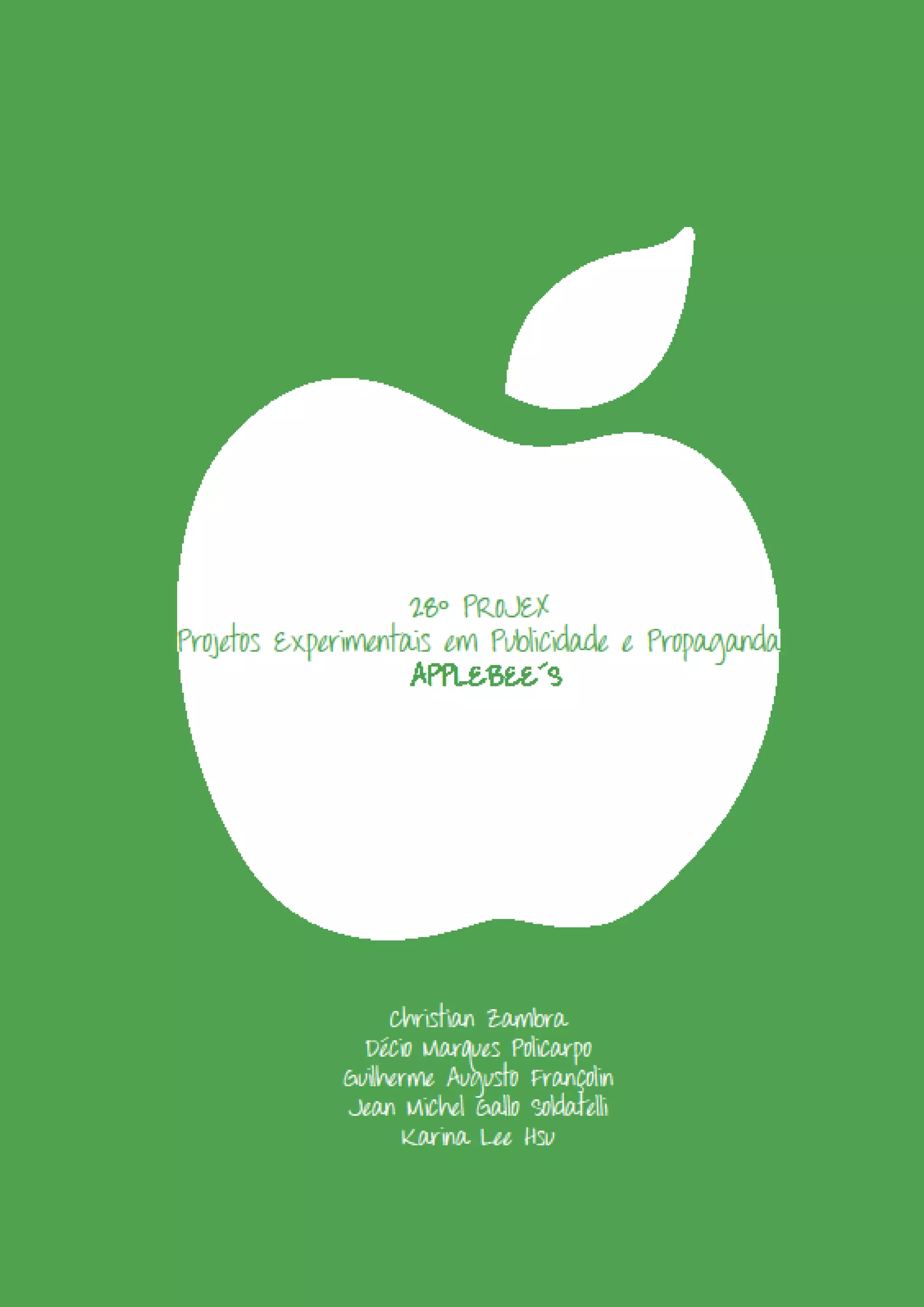 O documento apresenta um histórico da empresa Applebee's, incluindo sua expansão no Brasil e sua estratégia de comunicação. É analisada a concorrência por meio do modelo de 5 forças de Porter e realizada uma pesquisa com o público-alvo. Por fim, são propostas ações de marketing e peças publicitárias para a campanha, com previsão de resultados e métricas.