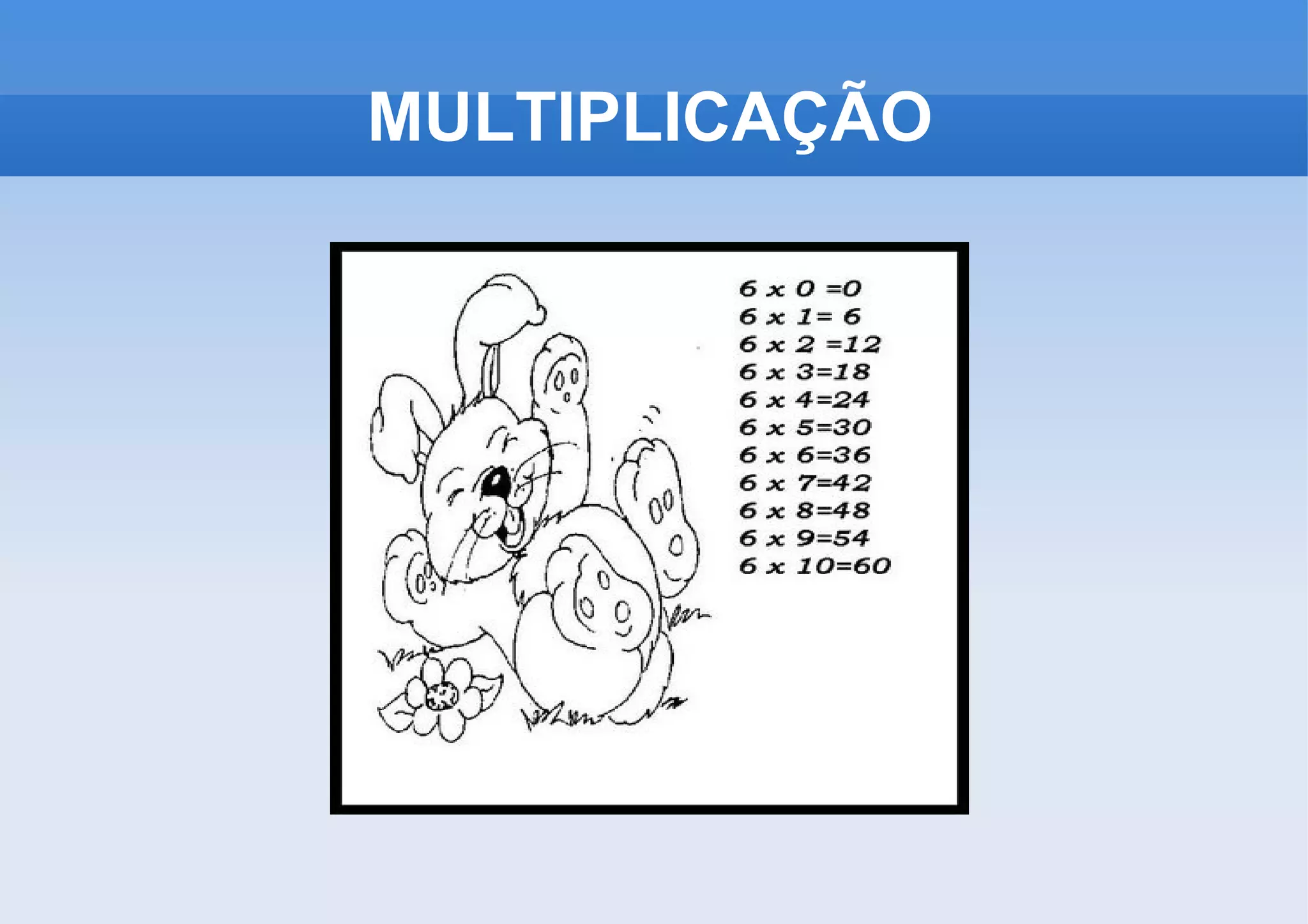 Quando um dosfatores de uma multiplicação de dois fatores for igual a 1, o resultado será igual ao outro fator. Por isso, dizemos que o 1 é o elemento neutro. Exemplo: 32 x 1 = 32 ou 1 x 32 = 32 ELEMENTO NEUTRO DA MULTIPLICAÇÃO
