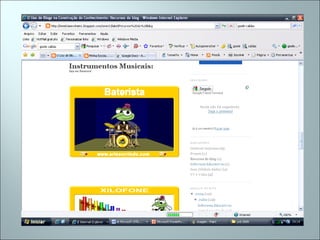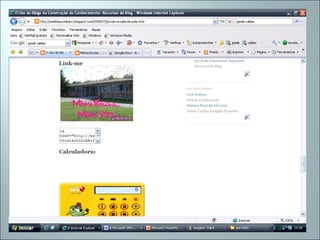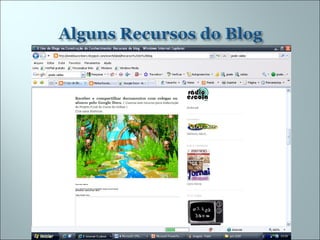 Este documento discute o uso de blogs na escola para integrar, divulgar e avaliar projetos educacionais envolvendo tecnologias da informação e comunicação. O blog permite compartilhar trabalhos de alunos, estimular a cooperação entre professores e manter registros atualizados para os alunos. O blog também facilita a troca de informações entre profissionais e permite que as famílias participem mais ativamente da vida escolar.