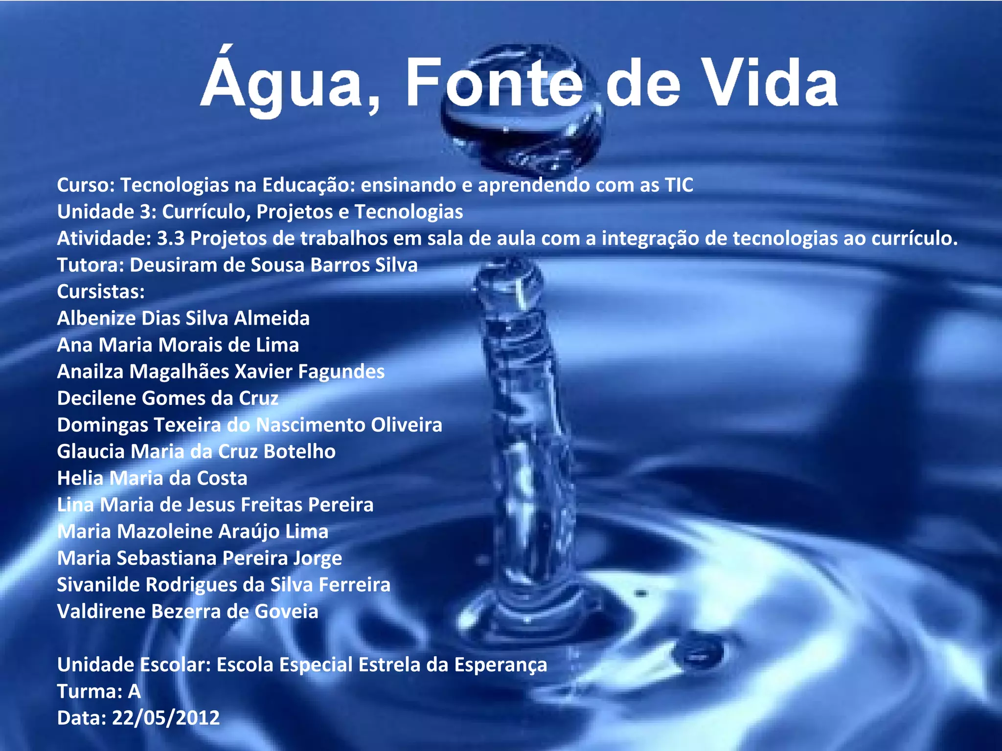 Este projeto visa conscientizar alunos e comunidade sobre a importância da preservação da água através de pesquisas, discussões, atividades práticas e uso de recursos tecnológicos para mostrar os problemas relacionados à poluição e escassez da água.