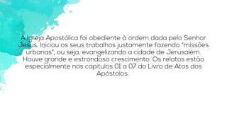 O documento propõe um projeto missionário urbano ("Projeto Gueto") para levar a palavra de Deus às pessoas que vivem próximas à igreja. O projeto envolveria evangelismo, ação social, cadastro de visitantes, oração, formação de células familiares e trabalho com famílias carentes dentro e fora do gueto.