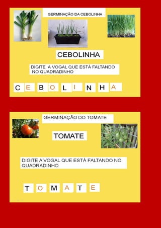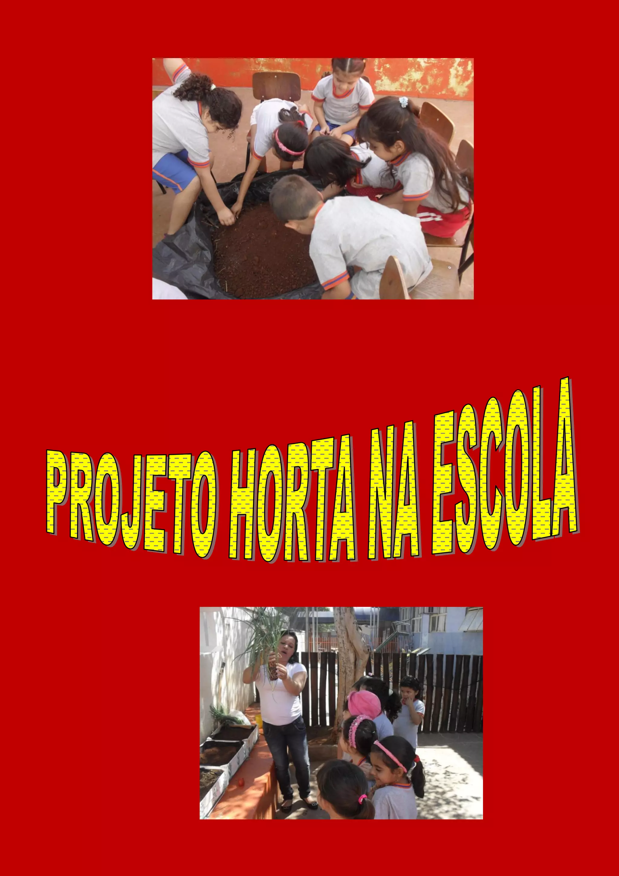 Este projeto visa desenvolver atividades lúdicas sobre plantas, animais e meio ambiente para 25 alunos do pré-escolar. As crianças irão plantar uma horta na escola e aprender sobre o ciclo de vida das plantas por meio de atividades práticas e tecnológicas ao longo do 4o bimestre.